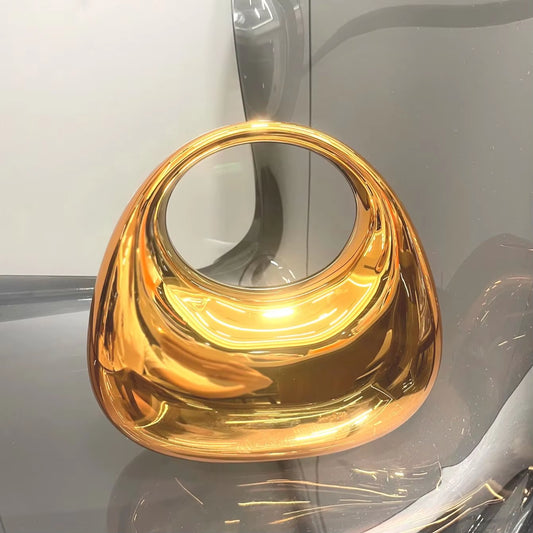 Golden Evening Bag Purses and Handbag Luxury Designer Shoulder Bags Moon Bag Party Wedding round Acrylic Shiny Clutch Purse
