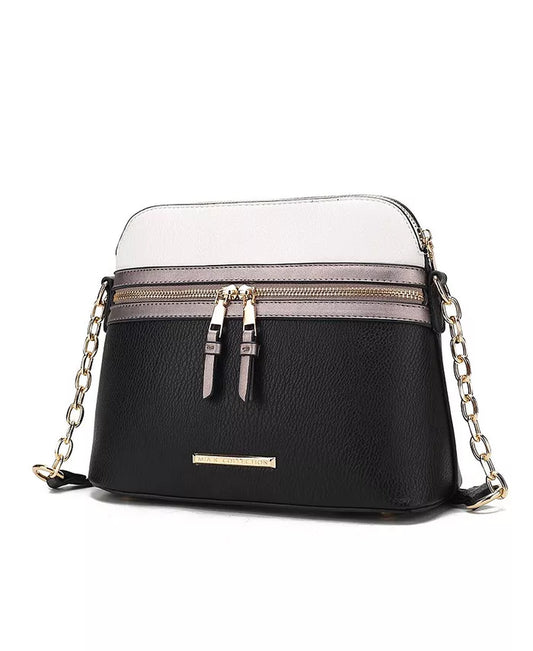 New Vitello Phenix White Leather Double Zip Camera Crossbody 1BH079